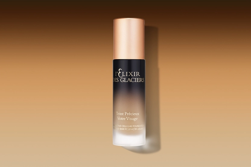 Formulé à partir d’actifs issus de la gamme l’Elixir des Glaciers, ce fond de teint au fini mat dépose un voile satiné sur la peau qui gomme les signes de l’âge.